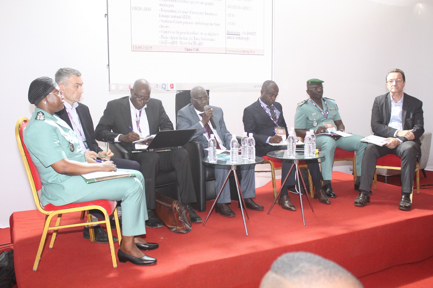 Concernant le 1er panel relatif aux innovations technologiques pour la gestion durable des ressources forestières, fauniques et en eau, Le Colonel Mamadou SANGARE, Directeur Général de la SODEFOR et ses partenaires Earthworm et Airbus ont présenté l’outil STARLING. Une technologie de surveillance spatiale des forêts qui a donné des résultats très satisfaisants en forêt classée de Cavally. Le Directeur général a donc émis le vœu de voir cette innovation s’étendre à l’ensemble des forêts classées avec l’appui des bailleurs de fonds. En outre le stand de la SODEFOR a reçu la visite de Mr Alain Richard DONWAHI , Ministre des Eaux et Forêts.